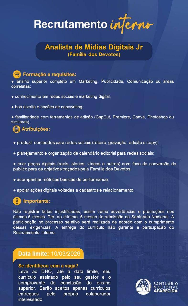 Oportunidade Interna: Analista de Marketing Pleno (Família dos Devotos)